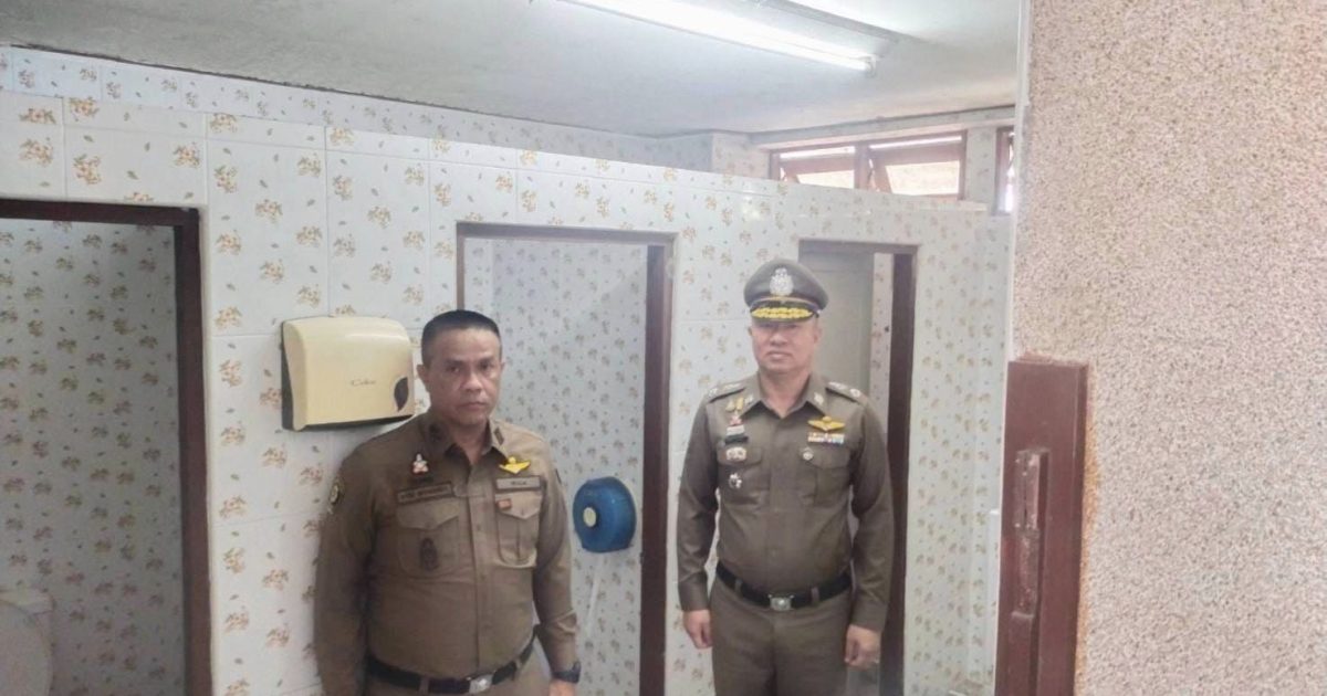 พล.ต.ต.พัลลภ แอร่มหล้า รอง ผบช.น.มาตรวจ สน.ลำหิน พบ พ.ต.อ.มานัส เลาะหมัดจิตร ผกก.ลำหิน ตรวจห้องน้ำบริการประชาชน สภาพพร้อมให้บริการประชาชน